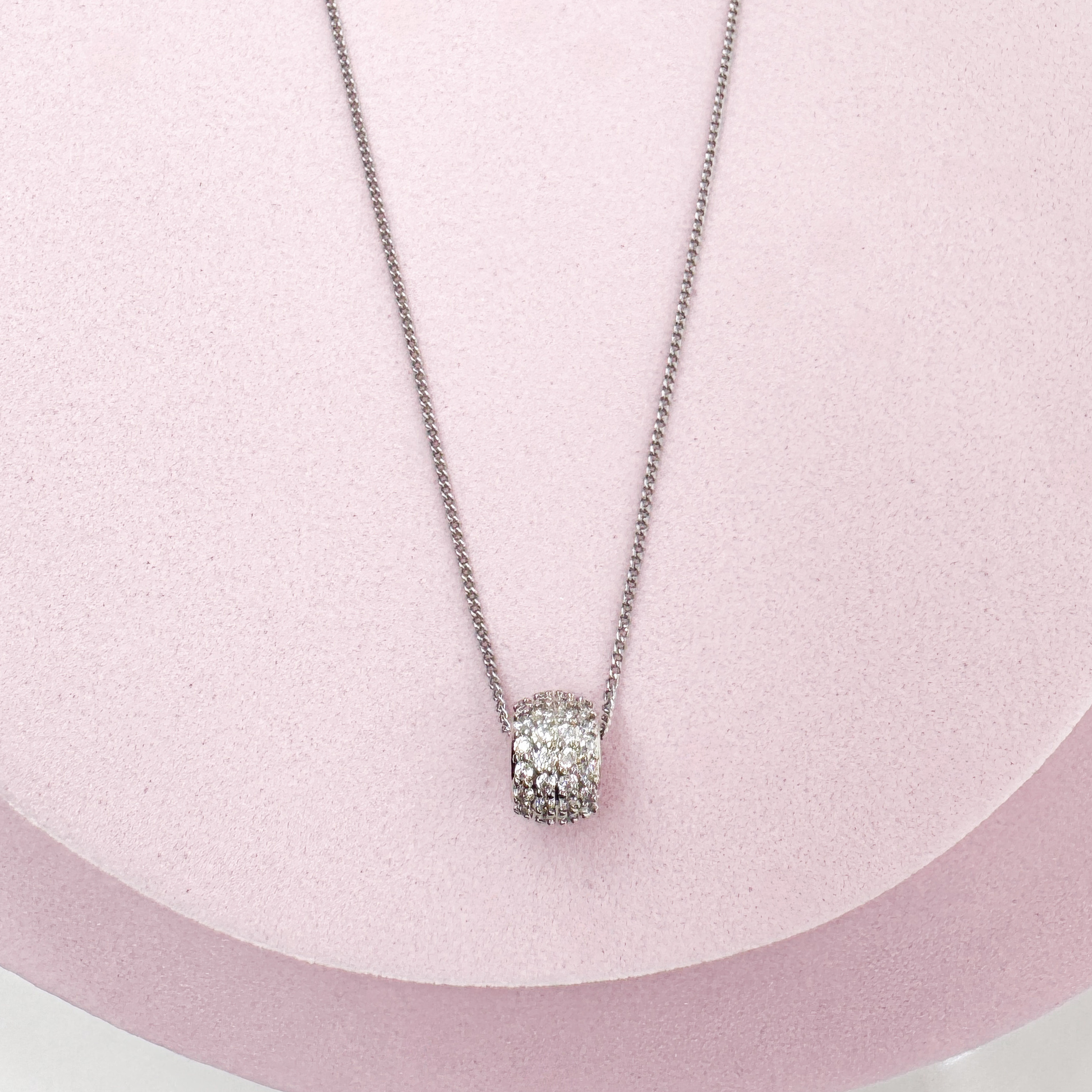 - Reifenförmiger Anhänger mit hochwertigen, funkelnden weißen Steinen.