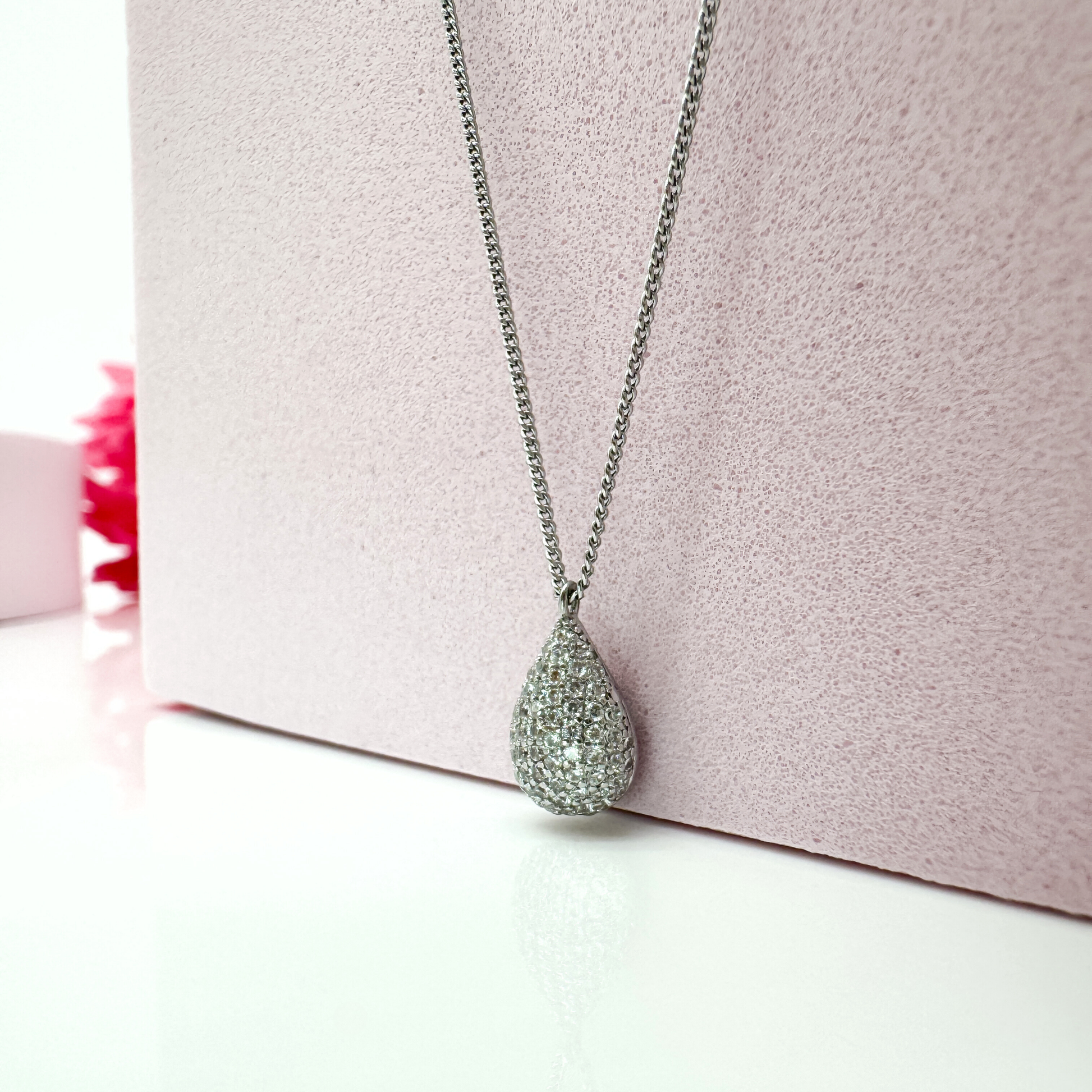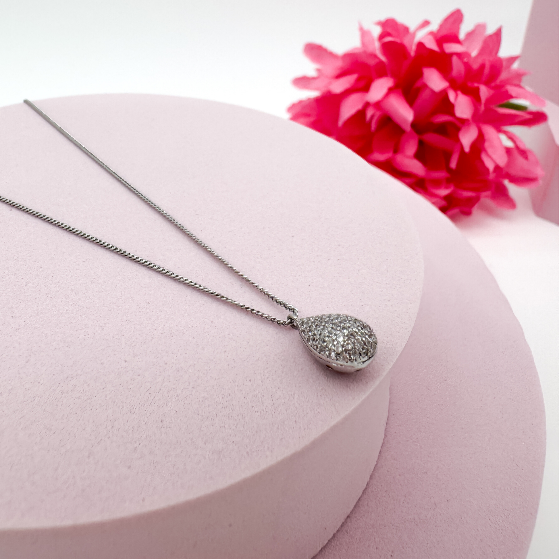 Bedeutung: Diese Kette symbolisiert Eleganz und Schönheit, während der Tropfen-Anhänger ein Zeichen für emotionale Tiefe und besondere Verbindungen darstellt. Sie eignet sich perfekt als Geschenk für jemanden, der einen Platz in Ihrem Herzen hat, oder als glänzendes Statement für die eigene Schmuckkollektion.