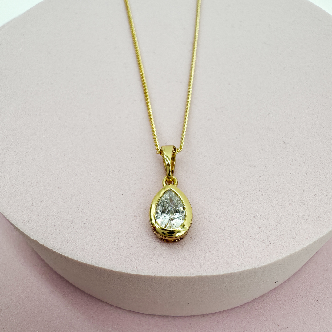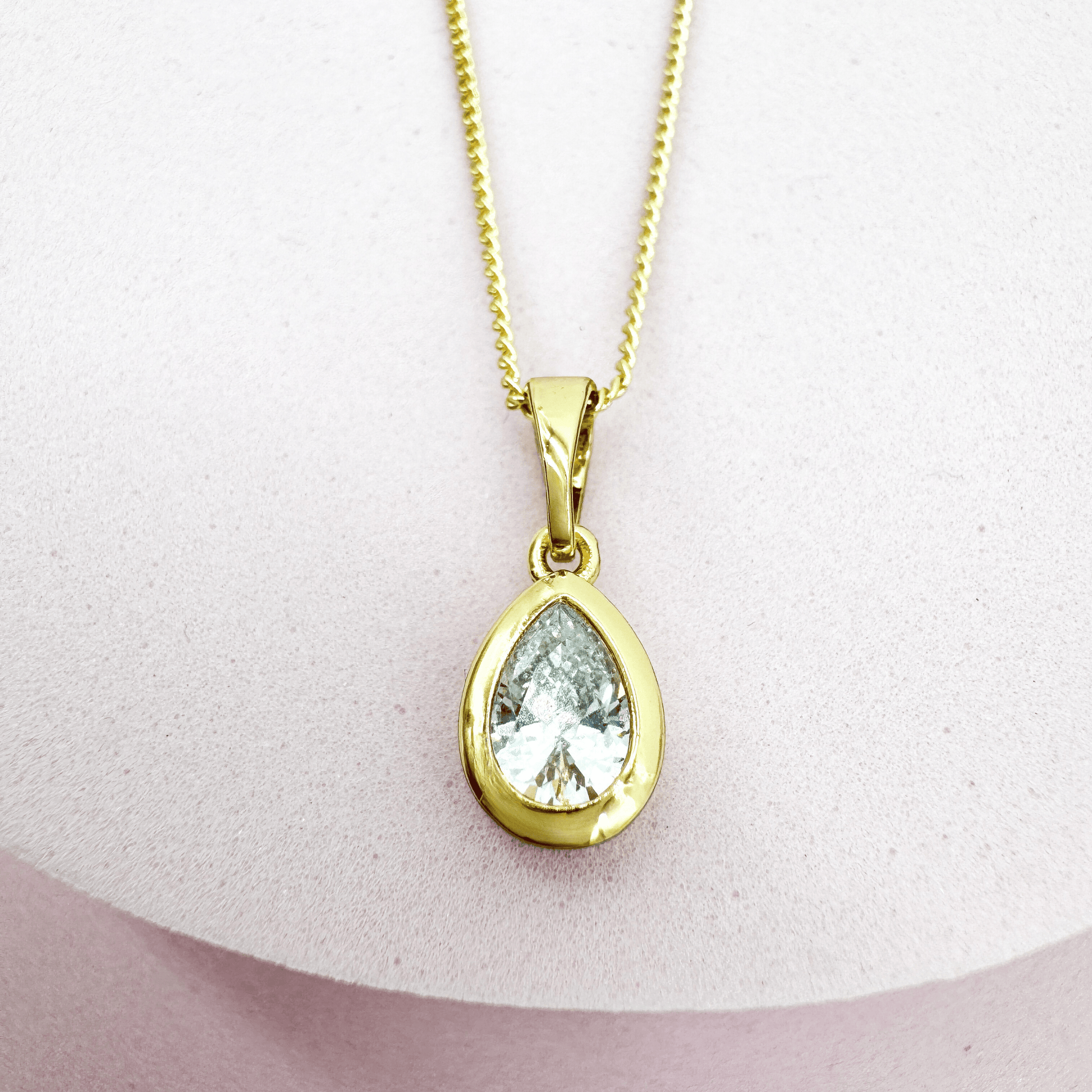 - Design: Tropfen-Anhänger mit funkelnden weißen Zirkoniasteinen