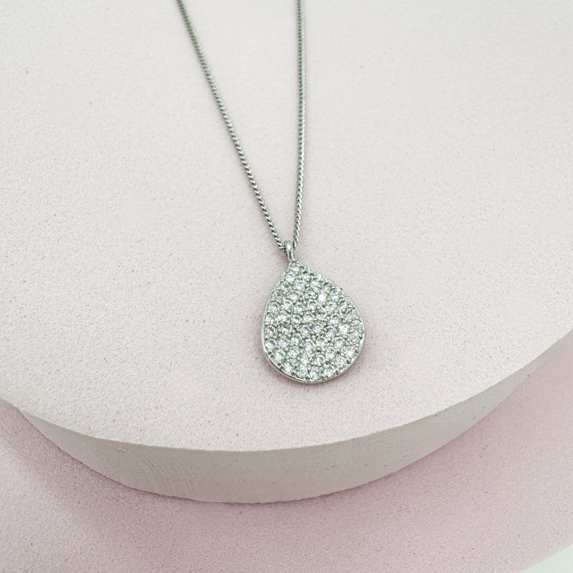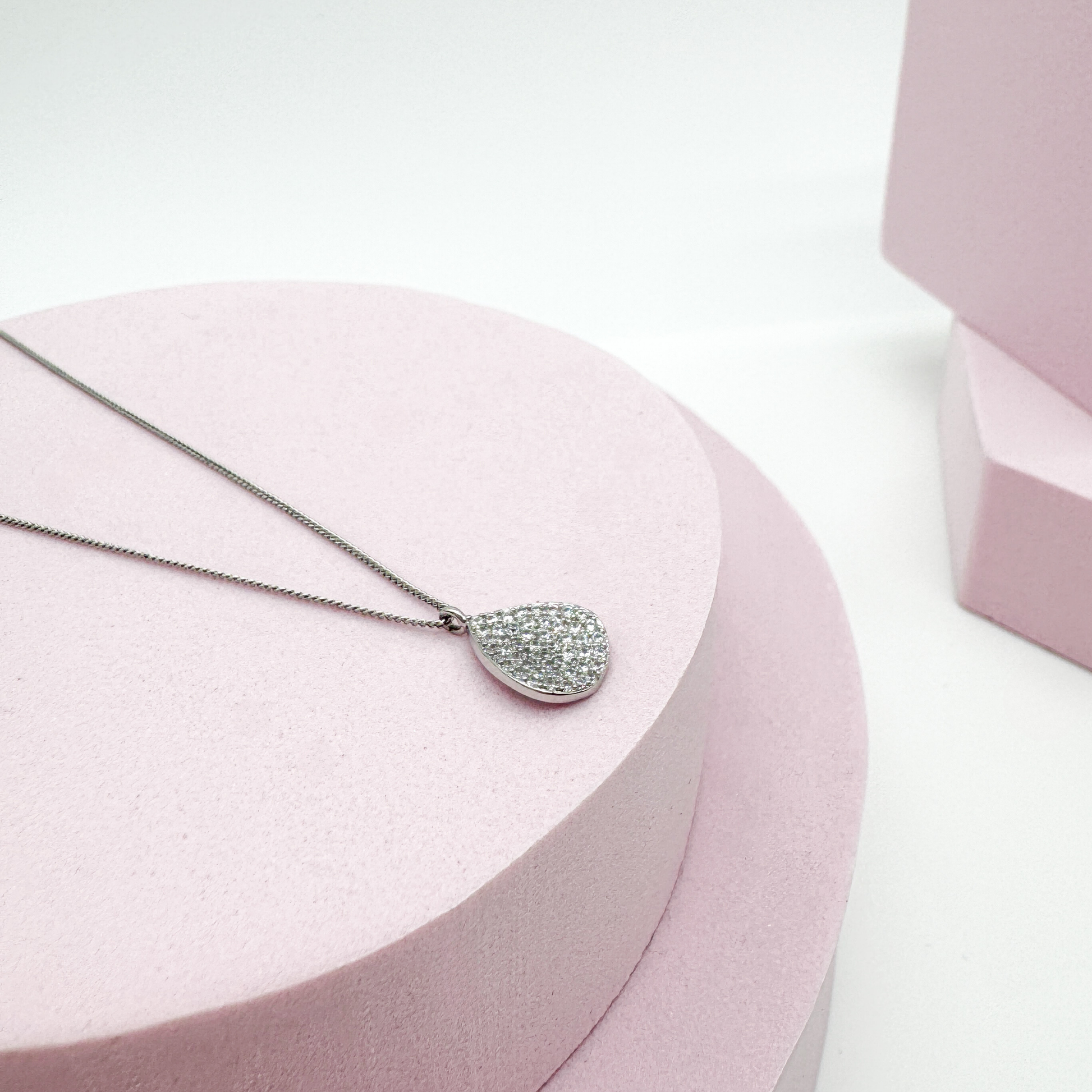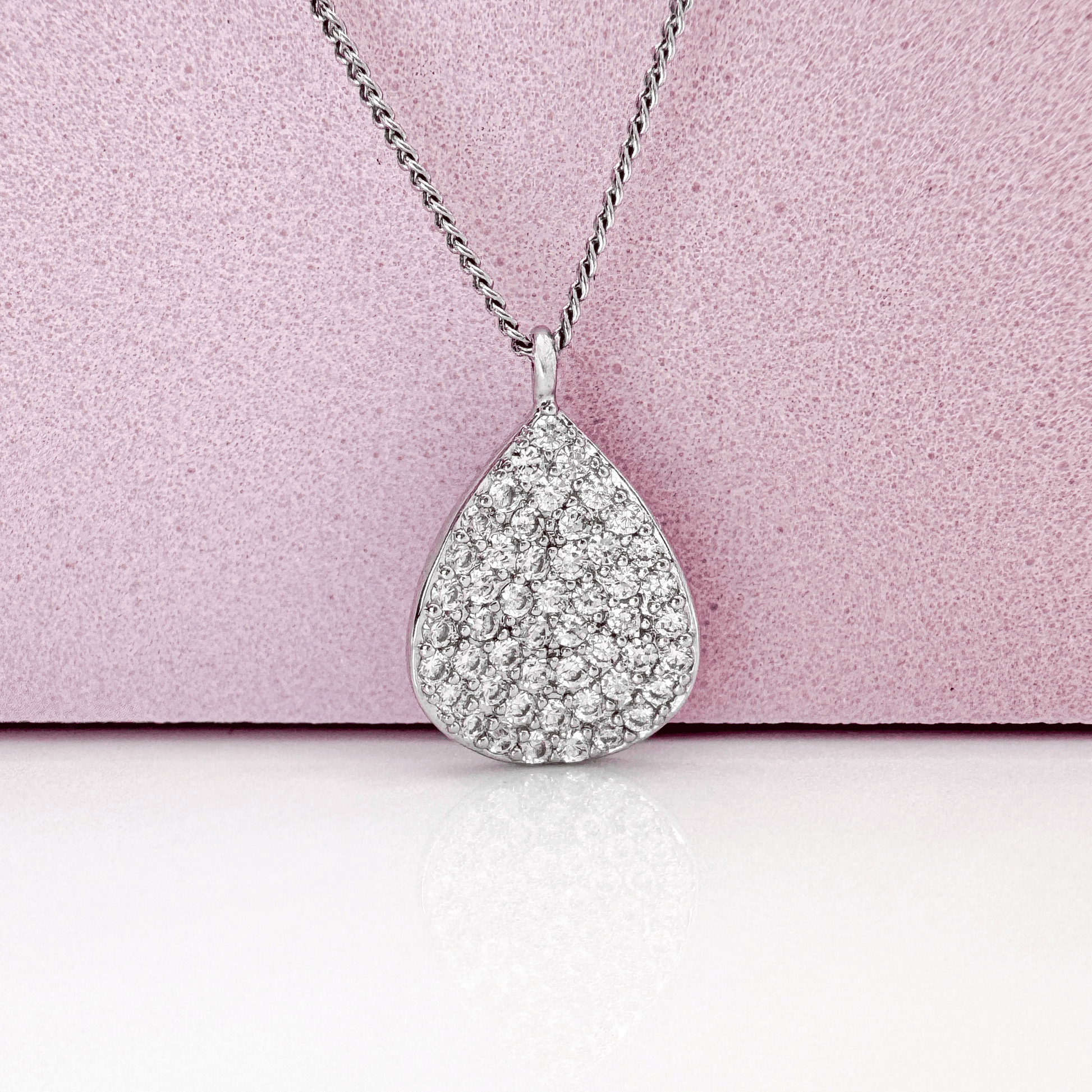 - Design: Eleganter Tropfen-Anhänger mit weißen Zirkoniasteinen