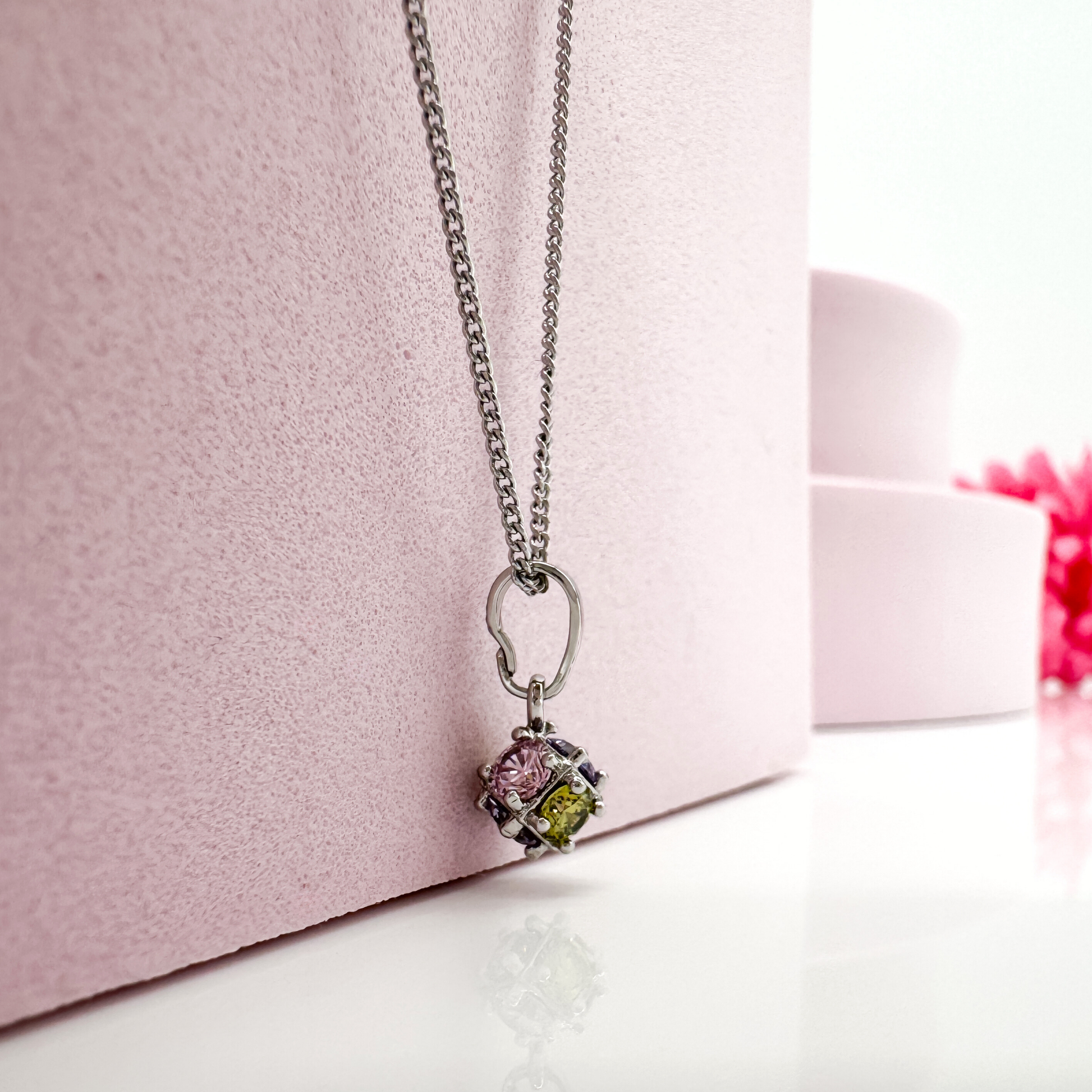 - Kugelförmiger Anhänger mit mehrfarbigen, funkelnden Steinen für ein einzigartiges Design.