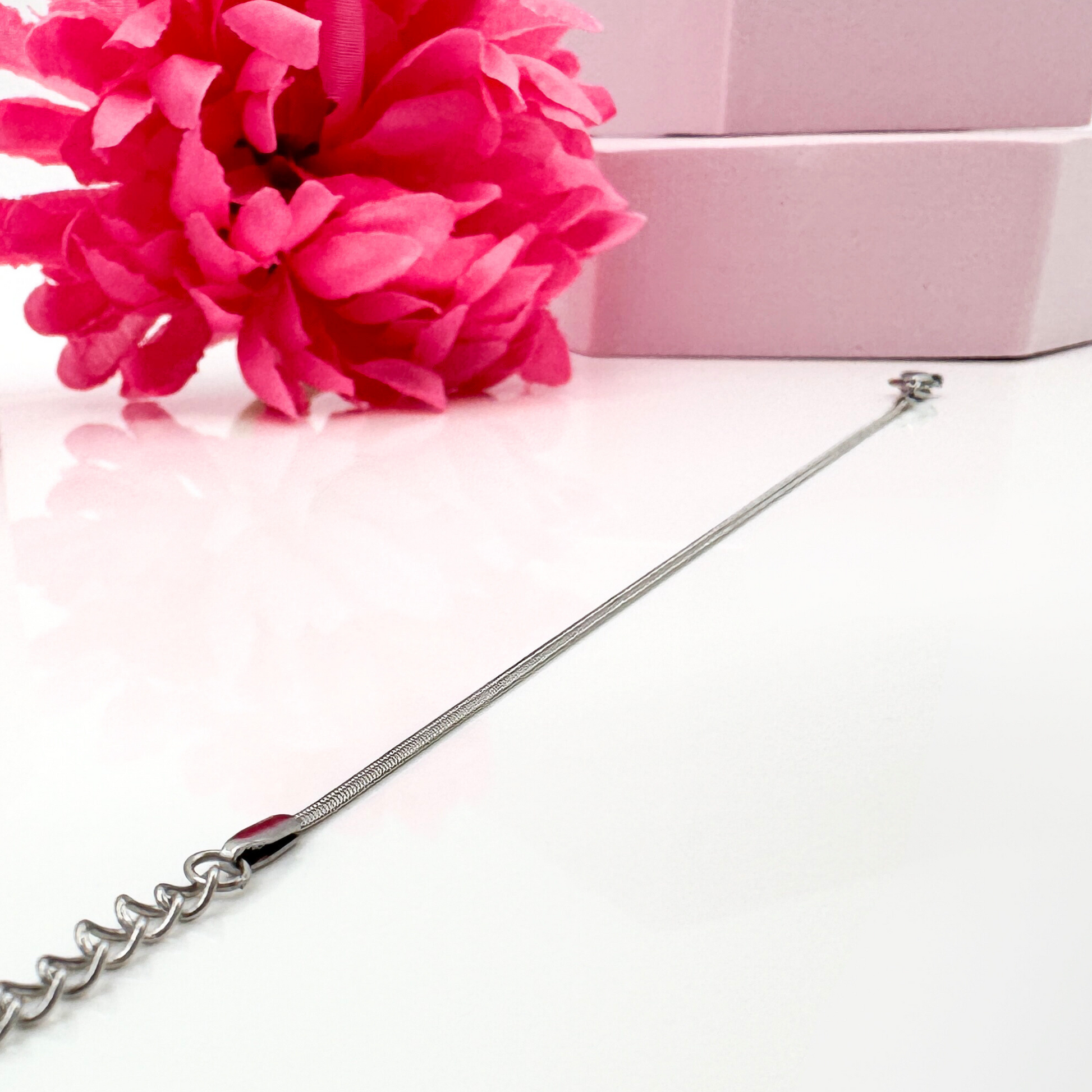 Das Silver Grace Armband überzeugt durch sein schlichtes und zeitloses Design. Die edle silberfarbene Basis strahlt eine zurückhaltende Eleganz aus und macht das Armband zu einem vielseitigen Accessoire, das zu jedem Outfit passt. Dieses minimalistische Schmuckstück ist perfekt für Damen, die auf der Suche nach einer subtilen Ergänzung für ihren Stil sind.